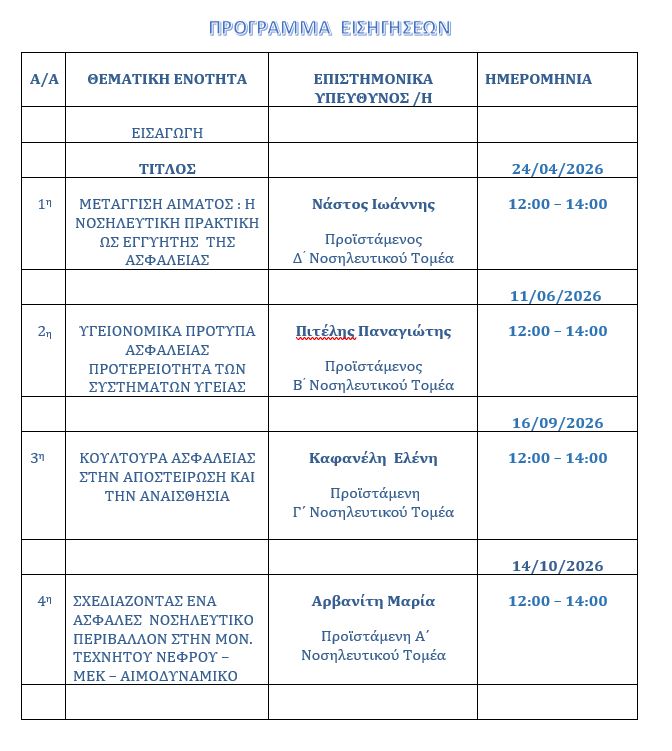 Εκπαιδευτικό Πρόγραμμα Νοσηλευτικής Υπηρεσίας 2026